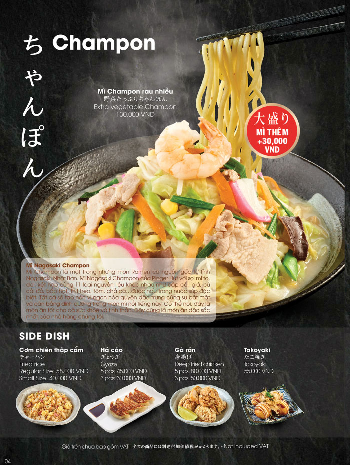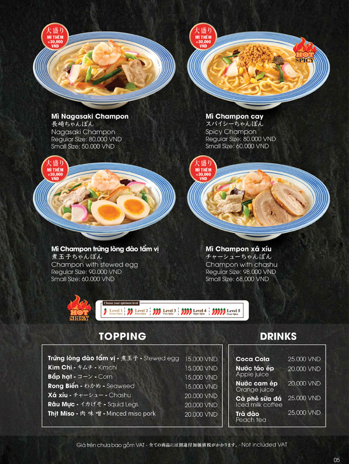 クレセントモール店 イオンタンフーセラドン店 イオンタンフーセラドン店 店舗情報 住所 30,Bo Bao Tan Thang Street, Son Ky ward, Tan Phu district,Ho Chi Minh city 電話 (₊84)903-072-486 営業時間 月曜から金曜日 10:00~22:00(ラストオーダー21:30) 土日祝日 9:00~22:00(ラストオーダー21:30) 新型コロナウイルス感染防止の取り組み メニュー ちゃんぽん ヌードル セットメニュー ライス サイドメニュー ドリンク メニュートップへ